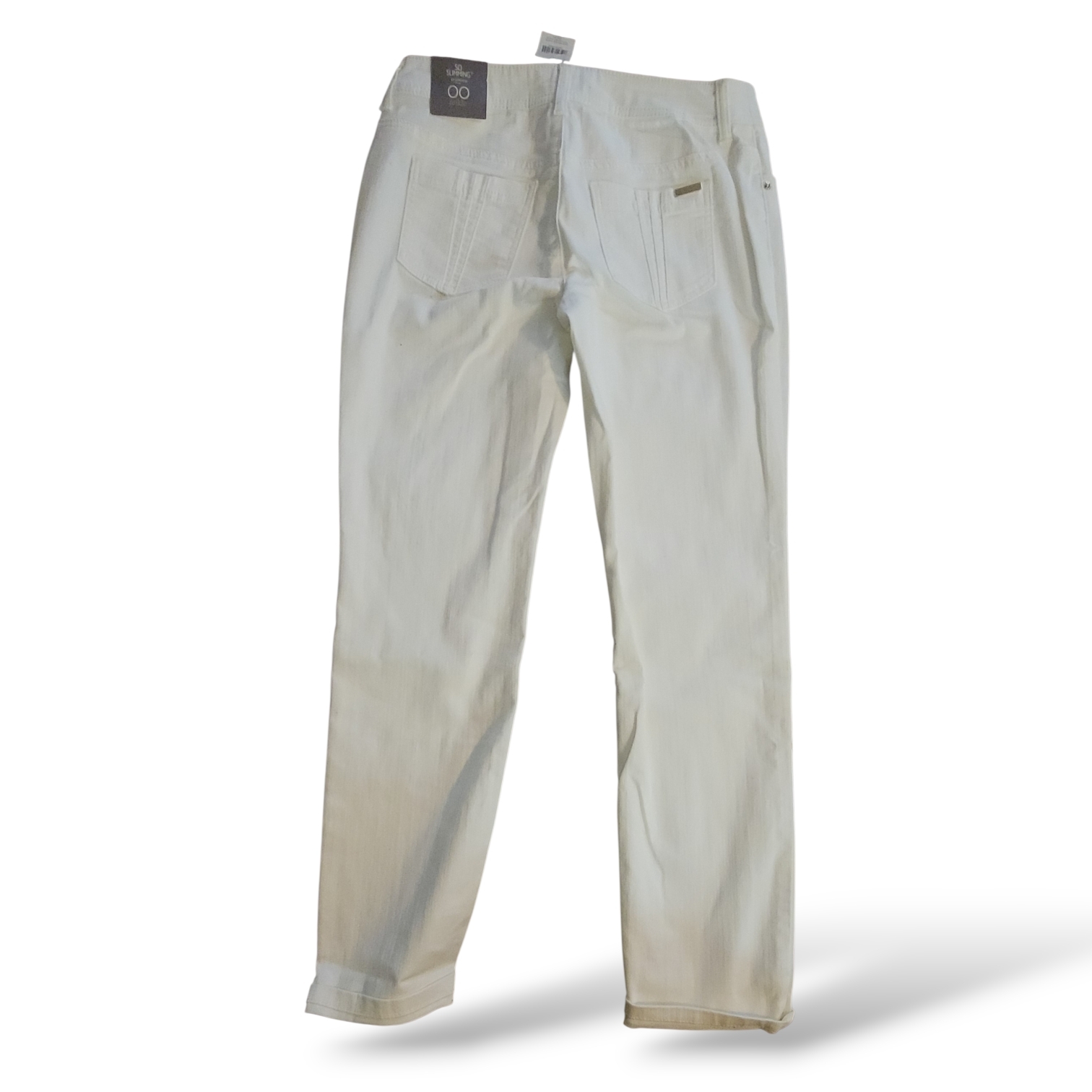 CHICO’S 5 pocket White SO SLIMMING size 00 waist 30″ hip 36″ inseam 29″ rise 9″ didn’t see material listed on tag, definitely spandex